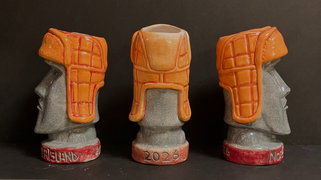 This mug is currently in production and will be finished in time for the February event. It is being produced by our friend from the Tiki community, Paul Smith. He is a great sculptor who has made movie props and more. You can find his handle on Instagram as “buffyprops”. If all goes well with the molds, he plans to make at least 100 of the mugs. Paul, thank you for your skills and dedication!
